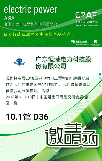 我司將參展2018亞洲電力電工暨智能電網(wǎng)展覽會作為我們的重要客戶/合作伙伴,我們誠摯邀請您蒞臨我司展位參觀、洽談!