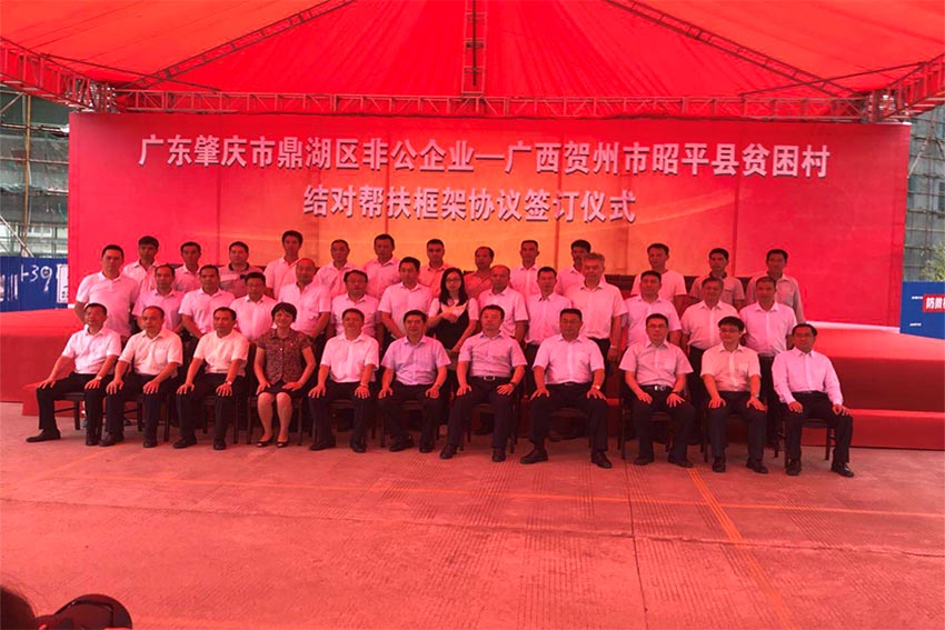我司代表與鼎湖區(qū)各企業(yè)代表、鼎湖區(qū)政府部門于6月20日到廣西昭平縣深度貧困村簽訂對(duì)口幫扶協(xié)議,在人才支援、資金支持、勞務(wù)協(xié)作、就業(yè)培訓(xùn)、產(chǎn)業(yè)項(xiàng)目、教育醫(yī)療等方面的重點(diǎn)幫扶。
