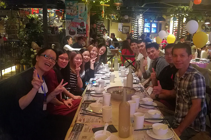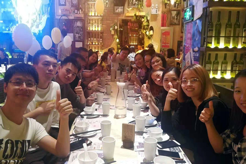 為了緩解員工的工作壓力,提高員工間的溝通和親和力!今天我們歡聚一堂,其樂融融的坐在一起!