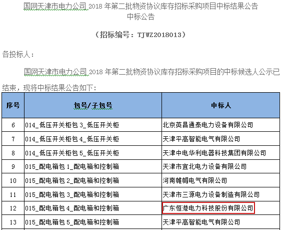 熱烈祝賀我司在國(guó)網(wǎng)天津市電力公司2018年第二批物資協(xié)議庫(kù)存招標(biāo)采購(gòu)項(xiàng)目中標(biāo)配電箱包4