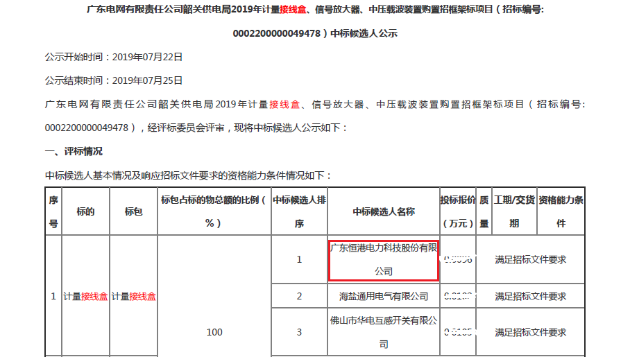 熱烈祝賀我司在廣東電網(wǎng)有限責(zé)任公司韶關(guān)供電局2019年計(jì)量接線盒、信號(hào)放大器、中壓載波裝置購(gòu)置招框架標(biāo)項(xiàng)目中標(biāo)