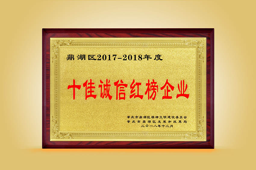 2016年-2018年度“誠(chéng)信紅榜”企業(yè)牌匾